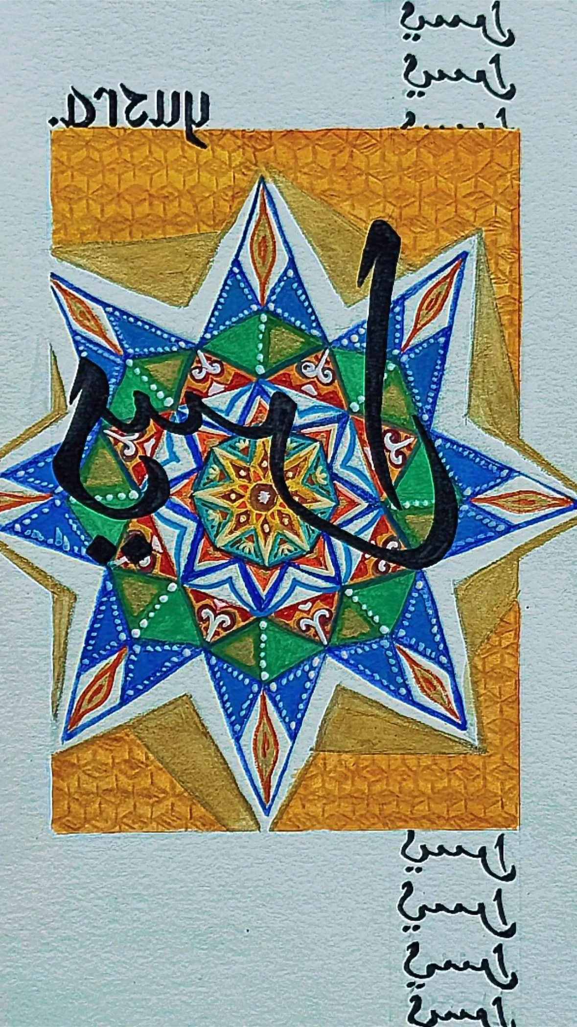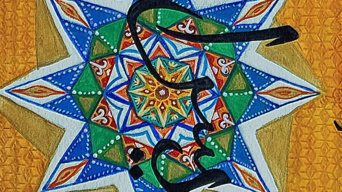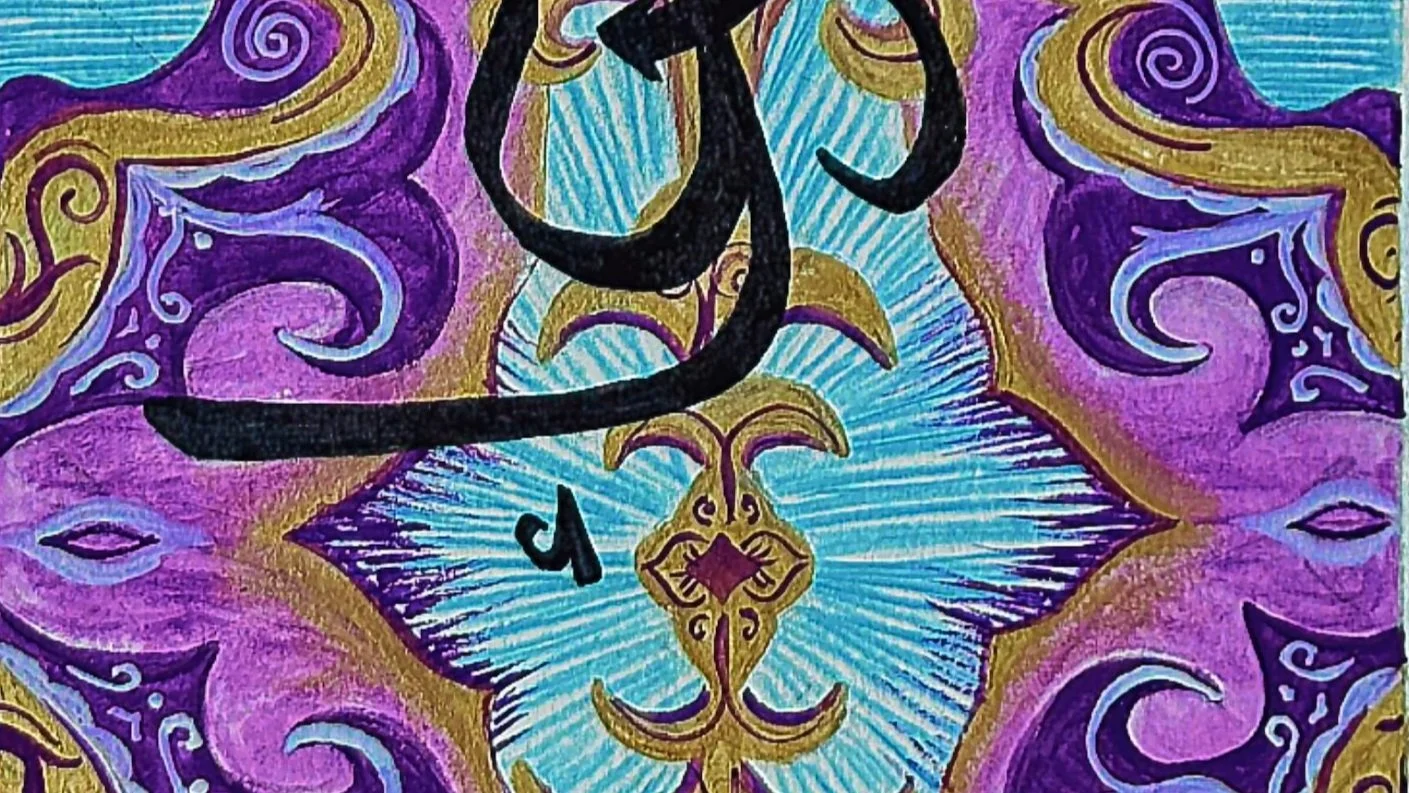 ‘The Book of Queens’ takes a spin on the Shahnameh, or ‘Book of Kings,’ from Persia, merging the form of an illuminated manuscript with the decoration of Arabic design & calligraphy. The five pages are dedicated to the five women in my friend Muskaan’s family—Afshan, Muskaan, Zoha, Yusra, & Duaa.